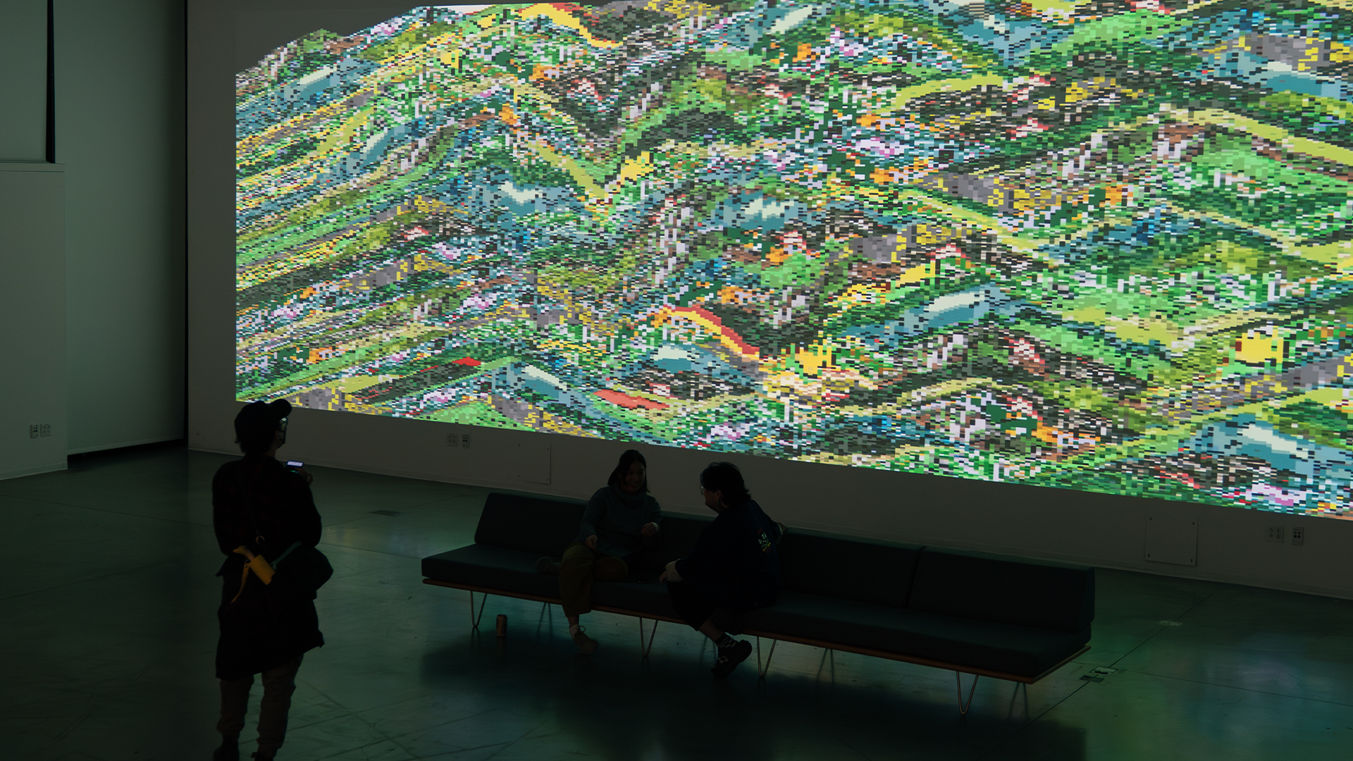 Portaling in through their phones, players interact with Layers Upon Layers by clearing out sections of multicolored sand. By repeatedly digging, tapping, and swiping, they fold into a flow state: preserving, eroding and contributing to the historical topology of the world. The noisy pixel terrain aggregates individual agency into collective behavior, players merging into players merging into landscape.