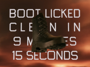 Tear Shaped Door is an interactive game installation in which players can lick a boot clean. The fastest lick is recorded and displayed on the secondary screen.